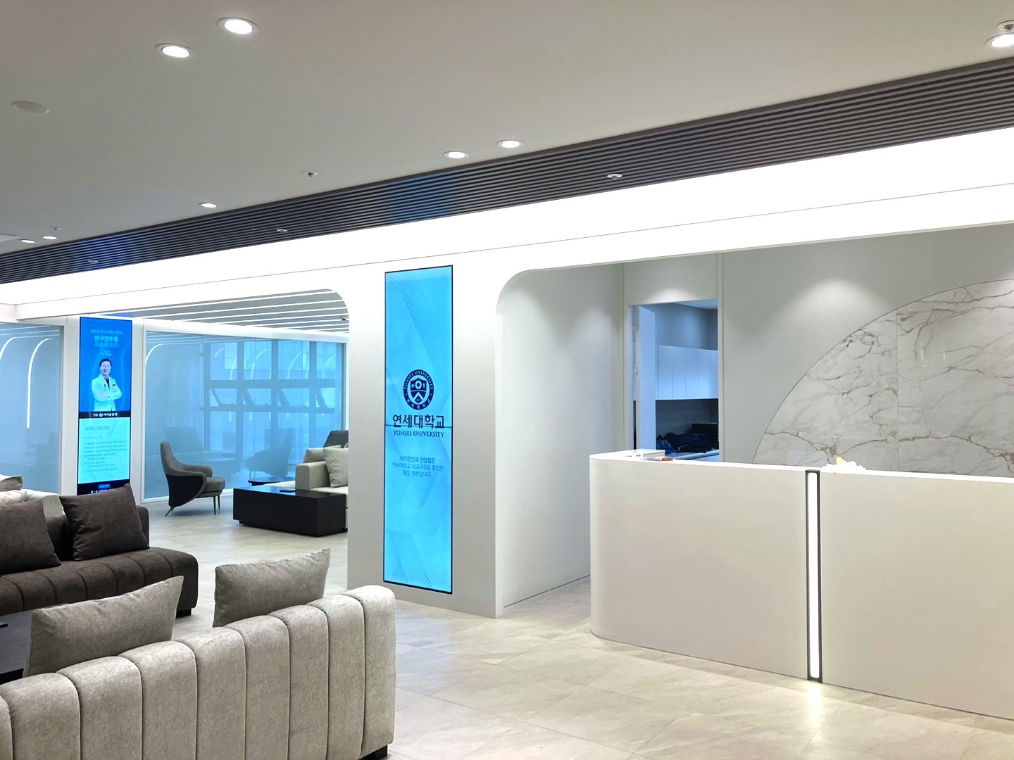 부산 서면 B 성형외과에 55인치 멀티비전과 27인치, 57 인치 DID 모니터가 설치된 프로젝트입니다. 성형외과 내부의 깔끔하고 고급스러운 인테리어를 한층 더 강조하고 병원의 전문적인 이미지를 시각적으로 표현하는 데 …