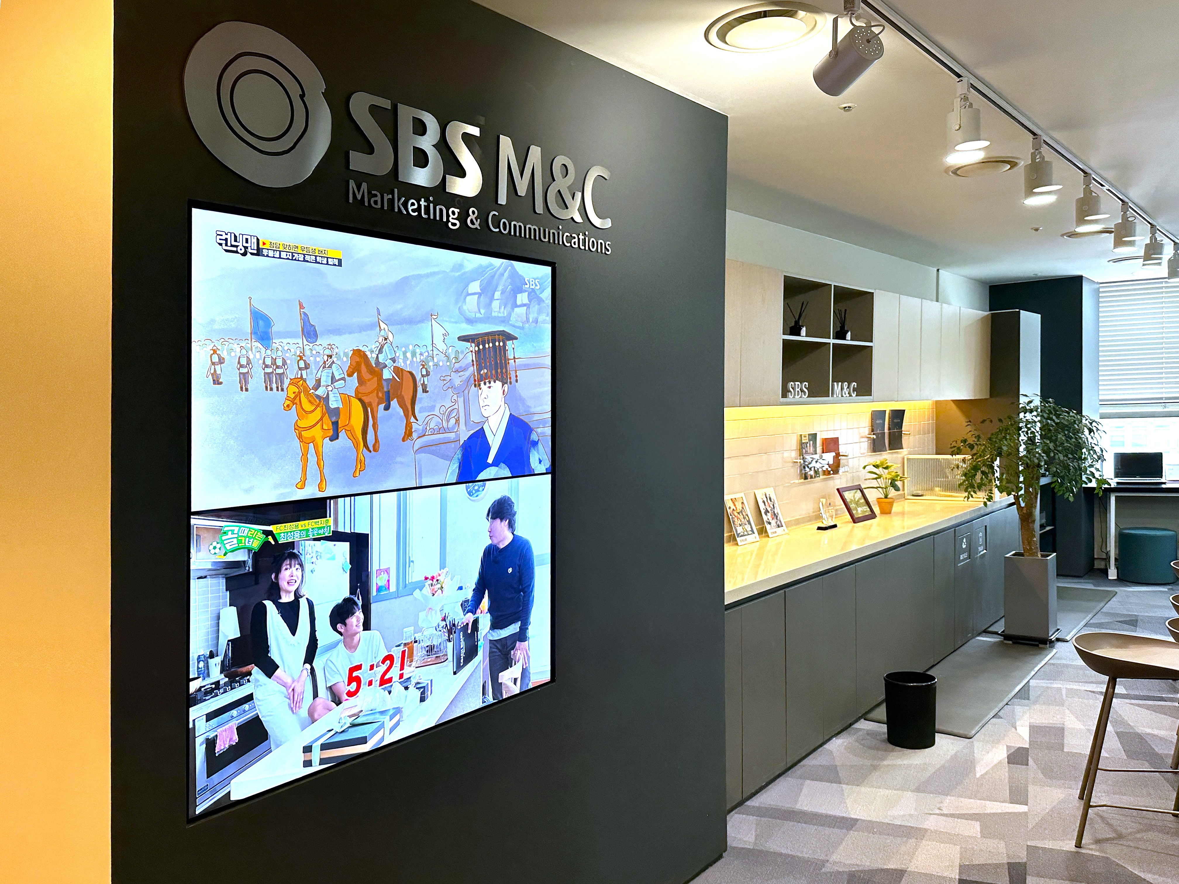 SBS M&C에 멀티비전 모니터가 설치된 프로젝트입니다. 46인치 멀티비전 모니터를 1X2 비디오월 형태로 설치하여 세련되고 현대적인 공간 연출을 완성했습니다. 선명한 고화질 화면으로 방송 콘텐츠 송출, 홍보 영상, 정…