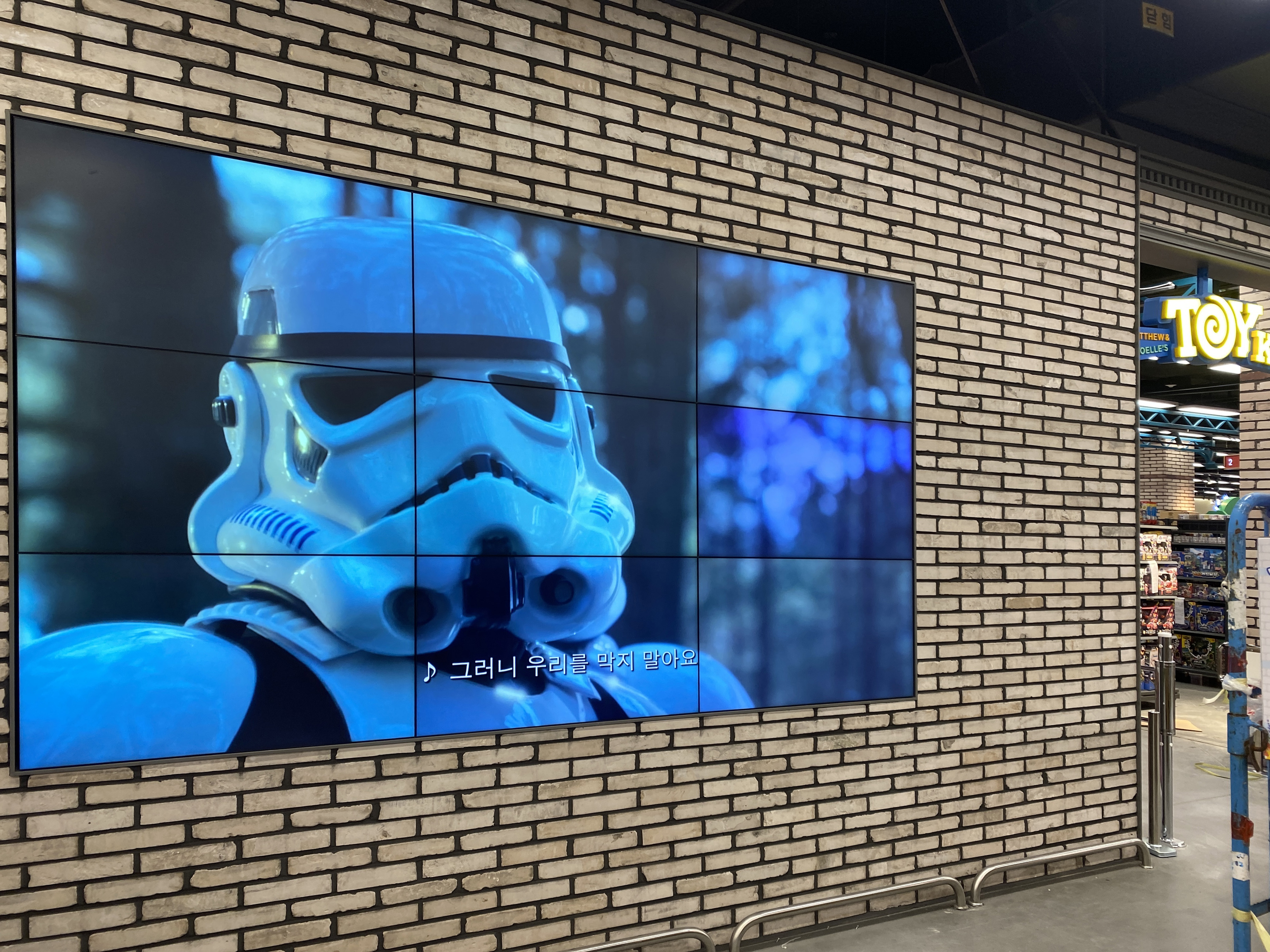이마트 천안서북점에 멀티비전이 설치된 프로젝트입니다. 55인치 멀티비전 모니터를 3x3 형태로 총 9대를 설치하여 하나의 커다란 화면처럼 세련되게 송출할 수 있도록 했습니다. 설치 시, 오차 없이 좌표를 잡고 간격과 …