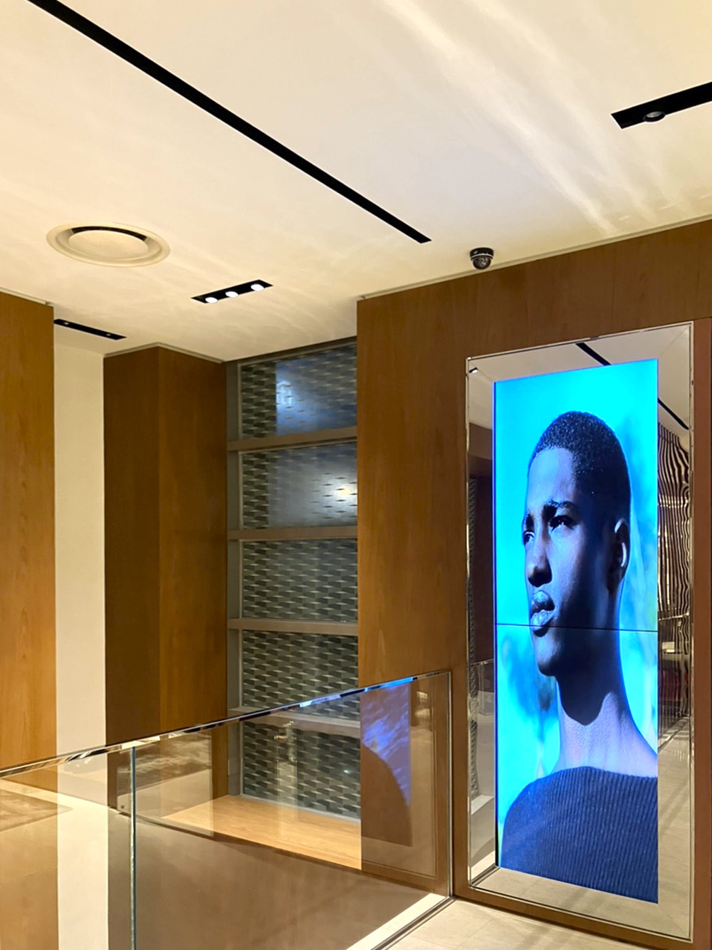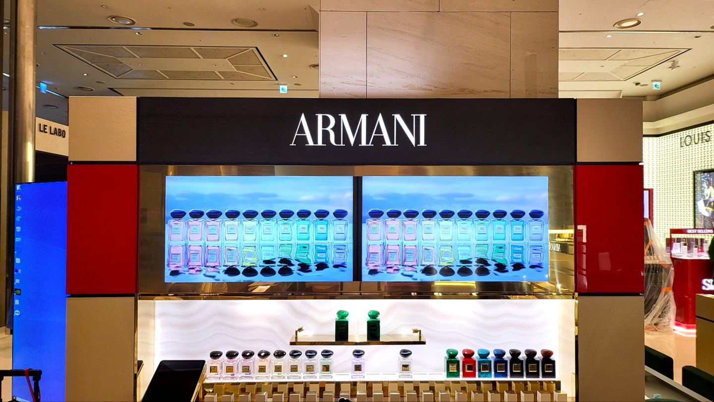 아르마니 부산 센텀점에 32인치 DID 모니터와 55인치 멀티비전 모니터가 설치된 프로젝트입니다.32인치 DID 모니터 2대는 진열대 상단에 가로로 길게 설치되어 홍보 영상을 송출할 수 있도록 구성되었습니다. 기존 진열…