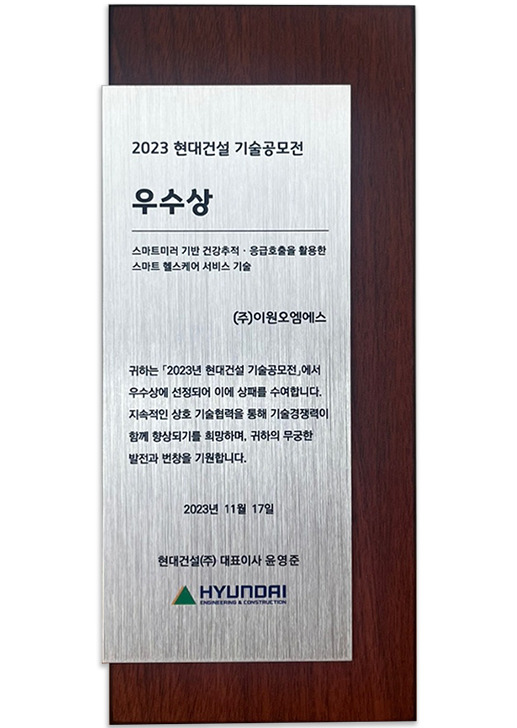 헤이미러 Best 혁신상 수상2023 현대걸설 기술공모전