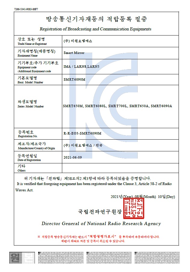 스마트미러방송통신기자재등의적합등록