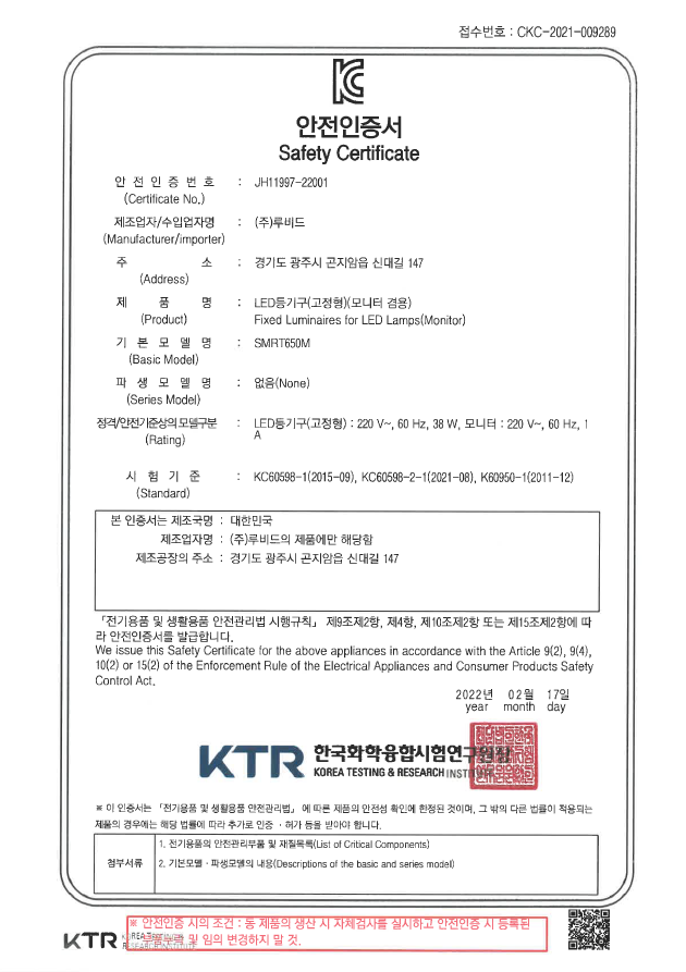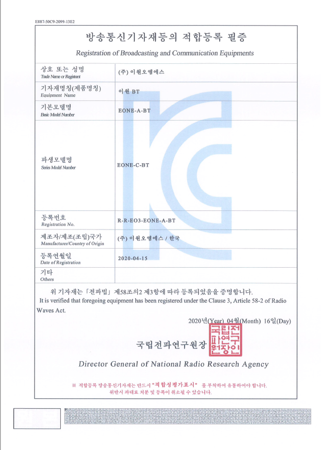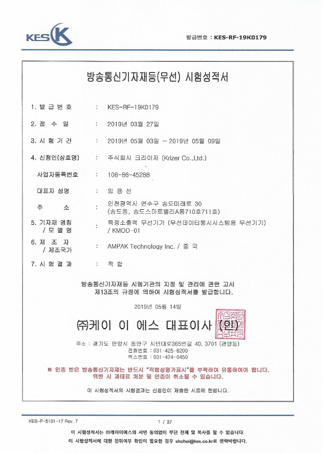 BLE모듈K C안전인증서