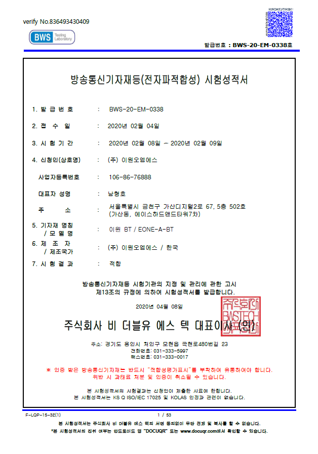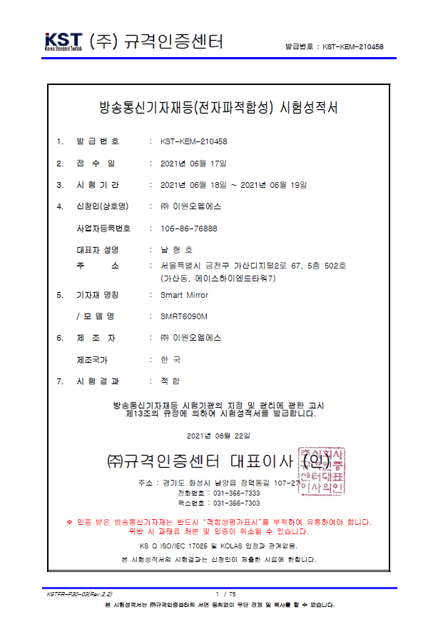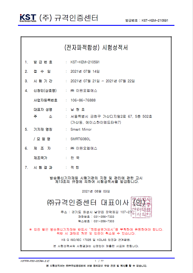 스마트미러전자파적합성 시험성적서